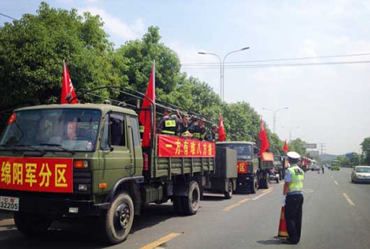 這次演練假想背景是安縣與北川交界處發(fā)生了里氏8.0級地震,并且全市暴雨每小時降雨量達(dá)到100毫米,強(qiáng)烈的地震波造成部分建筑物倒塌、山體滑坡引發(fā)泥石流堵塞河道,危及周邊及下游地區(qū)群眾的生命財產(chǎn)安全,急需疏浚搶險。